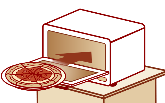 ピッツァをトースターに入れ、約5分間焼けば出来上がりです。