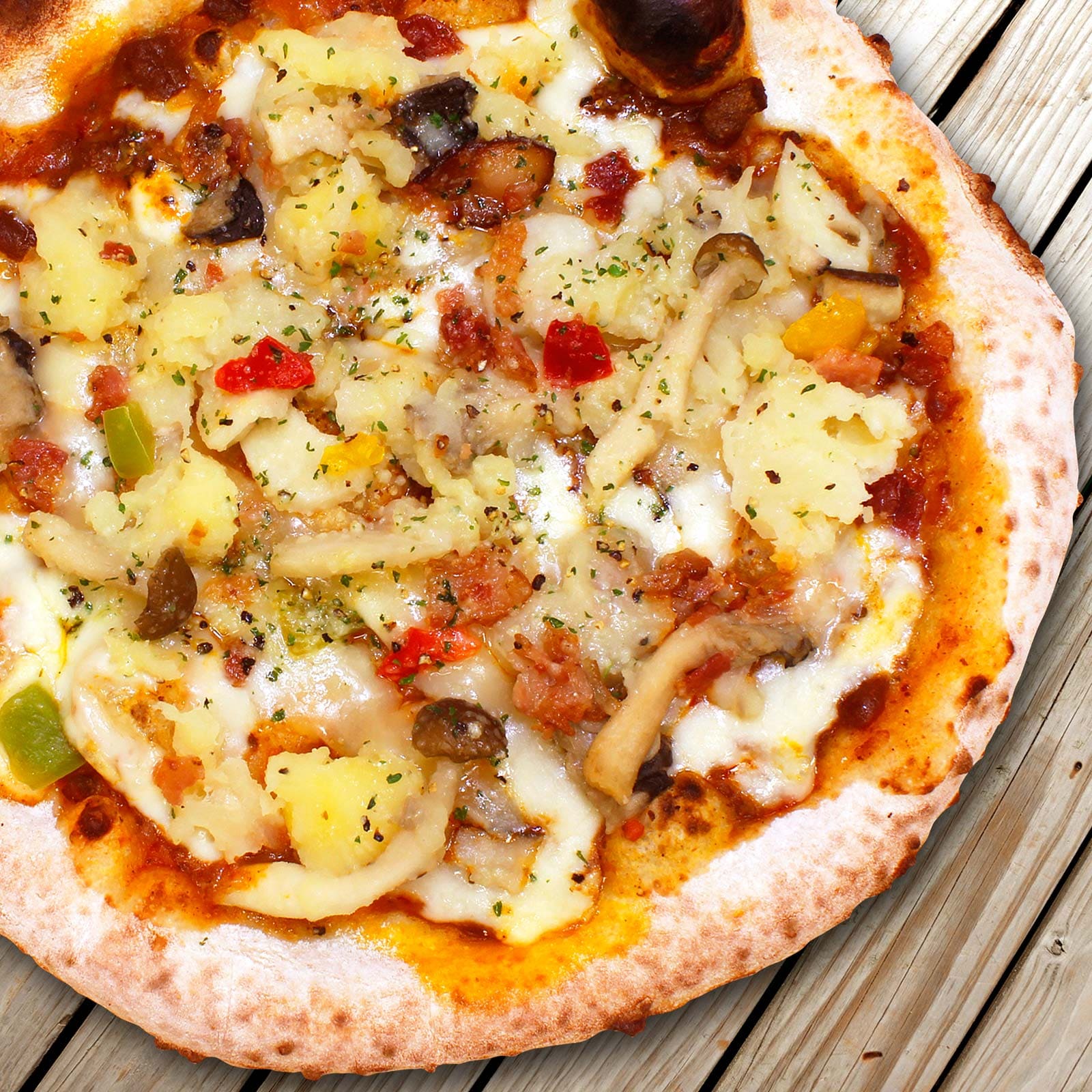 全て手作りですので、形が不揃いな部分や焦げ目もありますが、 これが本格的なナポリピッツァの証拠です。